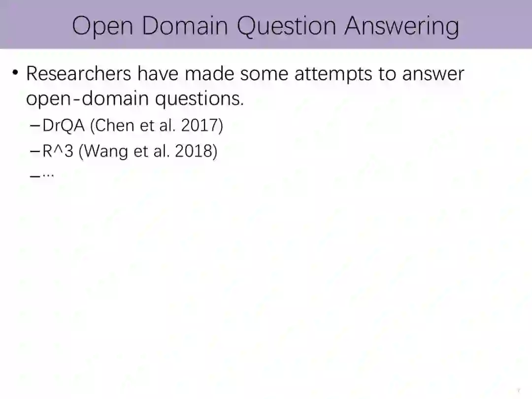 开放域问答着眼于从大规模的无标注文本中提取出给定问题的答案。现有开放域问答系统一般采用机器阅读理解技术对问题检索到的文本段落进行分析来提取出答案。但是,这些方法无法有效综合考虑不同文本段落的信息,还会受到文本段落中噪音的影响。此次报告,我们将介绍我们根据人类浏览、精读和总结的阅读模式提出的开放域问答模型,并介绍我们如何进一步利用有监督的数据帮助模型进行噪音过滤。