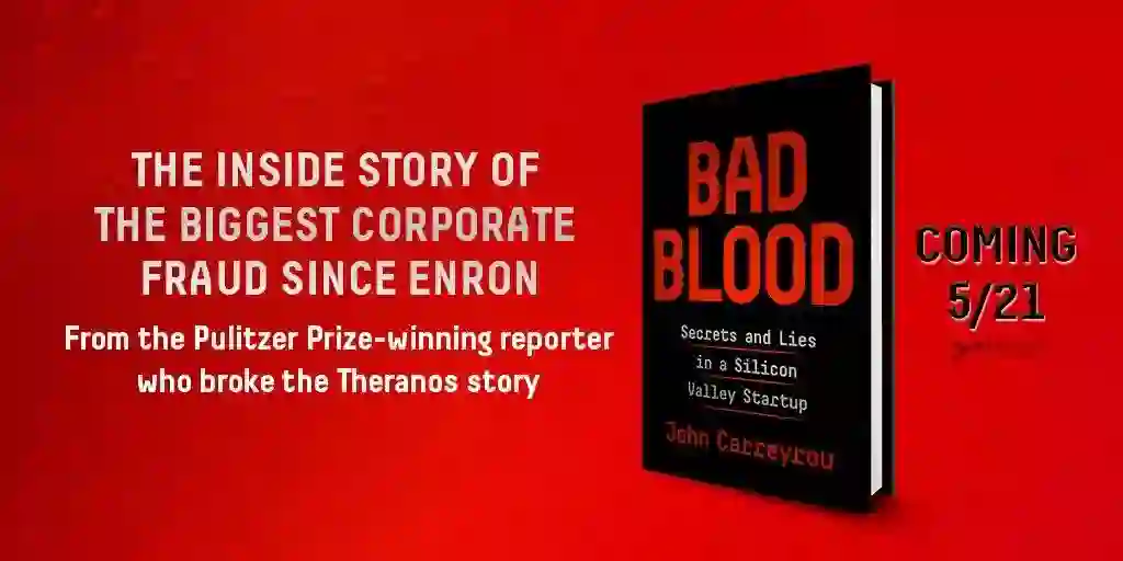 这本书的作者是两次获得普利策奖的华尔街日报记者 John Carreyrou,讲的是曾经红极一时硅谷创业公司 Theranos 和它的创始人 Elizabeth Holmes 的故事。
