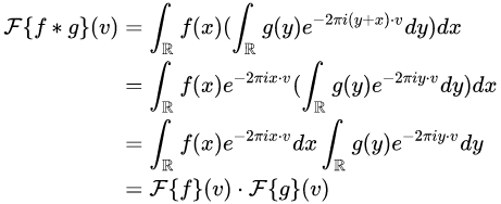 两者的卷积是其函数傅立叶变换乘积的逆变换」