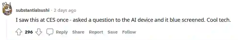 「我在国际电子消费展上体验过一次沃森的产品:问AI一句话,结果蓝屏了。真赞。」