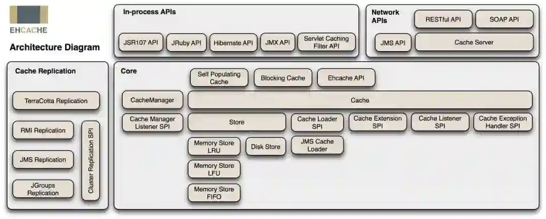 Ehcache 可以从进程内缓存扩展到使用 TB 级缓存的混合进程内/进程外部署。