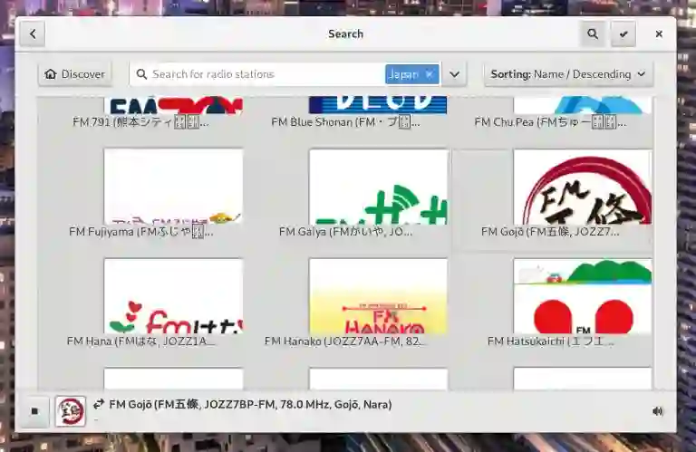 Gradio 是一个简单的收音机,它允许你搜索和播放网络电台。你可以按国家、语言或直接搜索找到它们。额外地,它可视化地集成到了 GNOME Shell 中,可以与 HiDPI 屏幕配合使用,并且可以选择黑暗主题。