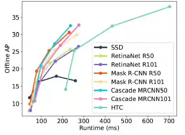 本文提出了一种方法可以将延迟和准确率结合起来应用在实时的算法评估中,作者称之为“流准确率”,并在此度量的基础上,提出了流感知的元基准,可以将任何单帧任务转换为流感知任务。