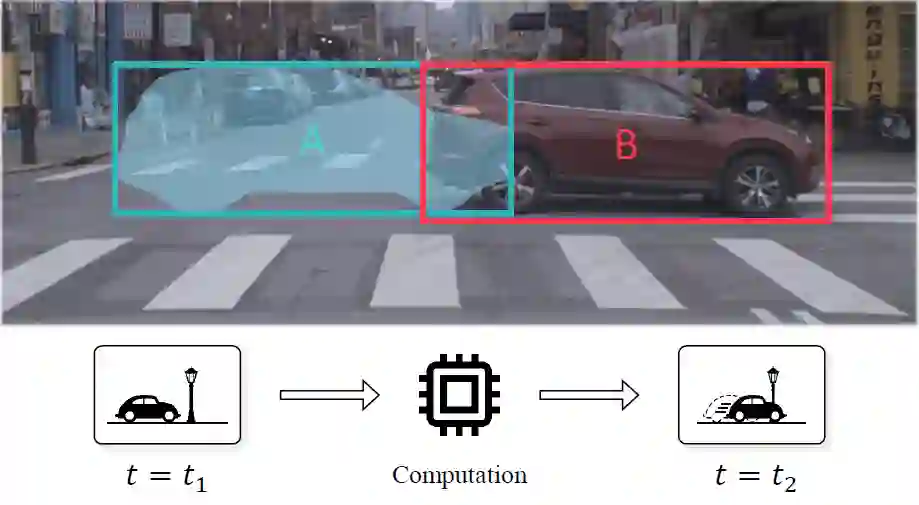 以这种评估方法优化得到的算法还无法应用在实时在线的感知场景中,因为当算法完成对某一帧图像的处理时,比如200ms后,周围的环境就已经发生了变化。如下面的视频所示,算法在得到第一帧中车辆的分割结果后,车辆就已经运动到另一个位置了,那此时所得到的分割结果的意义就很小了。