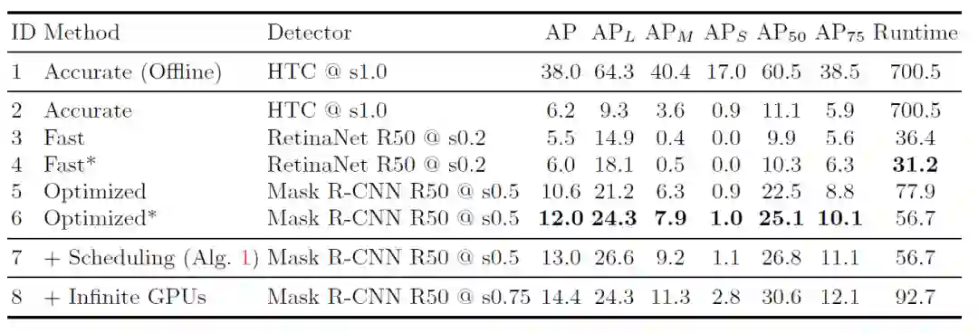 自动驾驶以及虚拟现实等应用都需要低延迟的算法来支撑,为了保证安全和提供给用户足够的视觉沉浸感,算法的延迟标准应该和人类对场景改变的反应时间保持一致,通常是200毫秒。近来的计算机视觉算法也开始考虑延迟(Latency)对算法性能的影响,但也仅仅是在离线环境下考虑如何提高算法的准确率(Accuracy),并在二者之间寻找一个平衡点。
