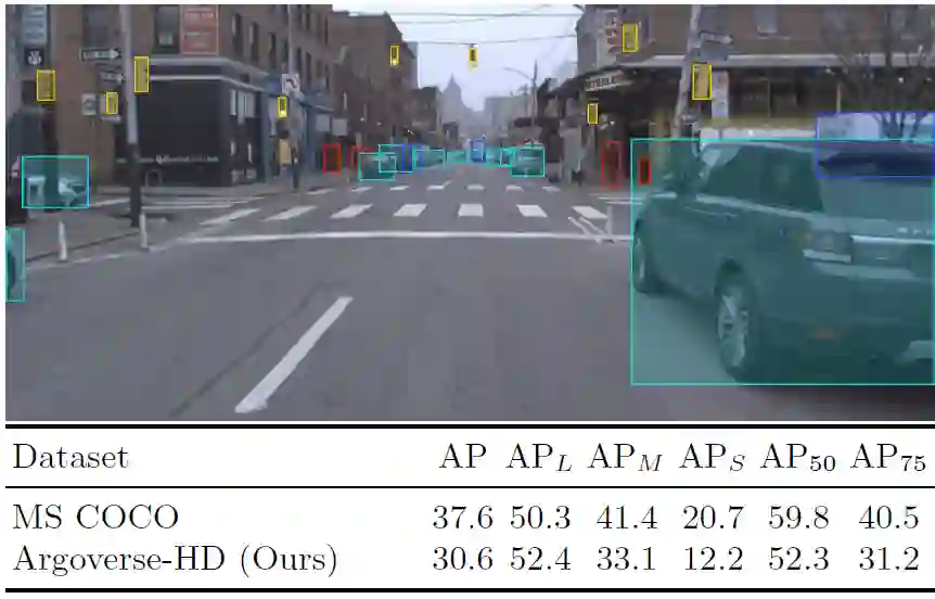 作者选择了Argoverse1.1数据集,作者重点选择其中的RGB图像数据,对其做了额外的密集标注构成了Argoverse-HD(High-frame-rate-Detection),新数据集中每个场景的视频的帧率为30FPS,同时标注密度与该帧率保持一致.