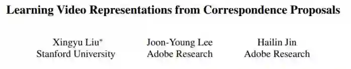 [1] Liu, Xingyu et al. “Learning Video Representations from Correspondence Proposals.” (2019).