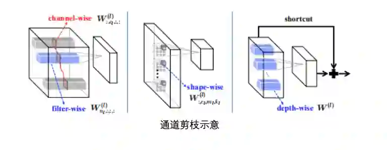 对于给定的神经网络,模型压缩的目的是减少计算和存储成本。连接剪枝将那些不重要的神经元连接剪掉,通道剪枝将无用通道去除,实现计算加速。模型量化用离散值表示神经网络中的权重,实现压缩和加速。知识蒸馏将网络分为教师网络和学生网络,旨在通过强大的教师网络得到兼具正确率和轻量的学生网络。