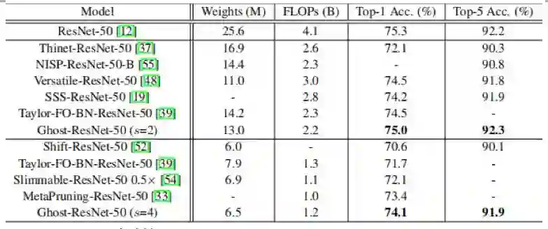 在基准模型和数据集上的实验表明,该方法是一种即插即用的模型压缩方法,可以将原始模型转换为紧凑模型,同时保持可比较的性能。此外,使用新的Ghost模块构建的GhostNet在效率和准确性方面都优于最先进的轻量级神经网络架构。