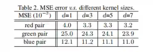 以上图中的的三对特征映射为例,将左边的特征作为输入,另一个作为输出,利用一个小的深度卷积滤波器来学习映射,代表它们之间的线性操作。利用均方差MSE作为评价标准,结果如下图所示,可以看到,MSE值非常小,表在深度神经网络中,特征图之间存在很强的相关性,这些冗余特征图可以由多个固有特征图生成。