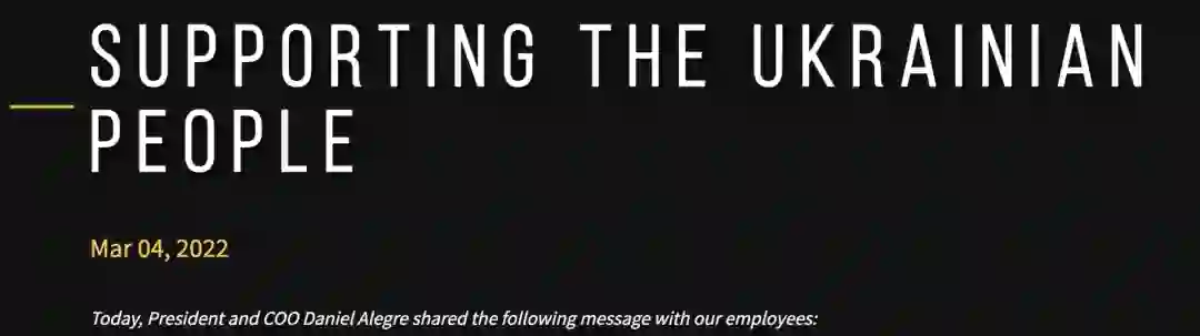 Alegre在信中说,「我们正在尽一切可能帮助受到这场战争直接影响的员工和他们的家人」。