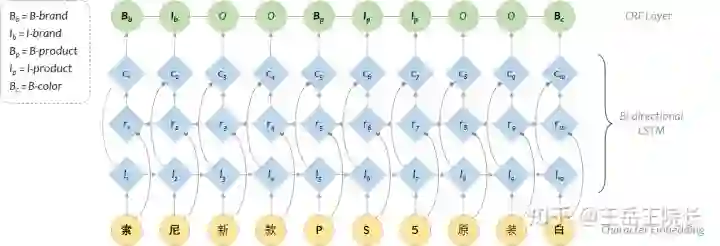 另外,如果在某些场景下不考虑实体类别(比如问答系统),那就直接完事了,但是很多场景下需要同时考虑实体类别(比如事件抽取中需要抽取主体客体地点机构等等),那么就需要扩展 BIO 的 tag 列表,给每个“实体类型”都分配一个 B 与 I 的标签,例如用“B-brand”来代表“实体词的开始,且实体类型为品牌”。当实体类别过多时,BIOES 的标签列表规模可能就爆炸了