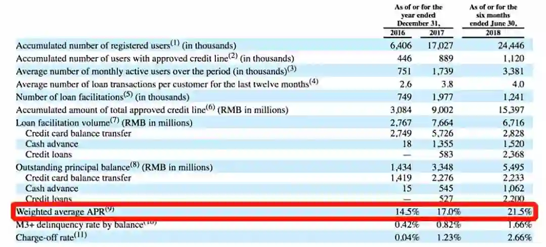 ▲2016-2018 上半年「小赢卡贷」的实际年化利率