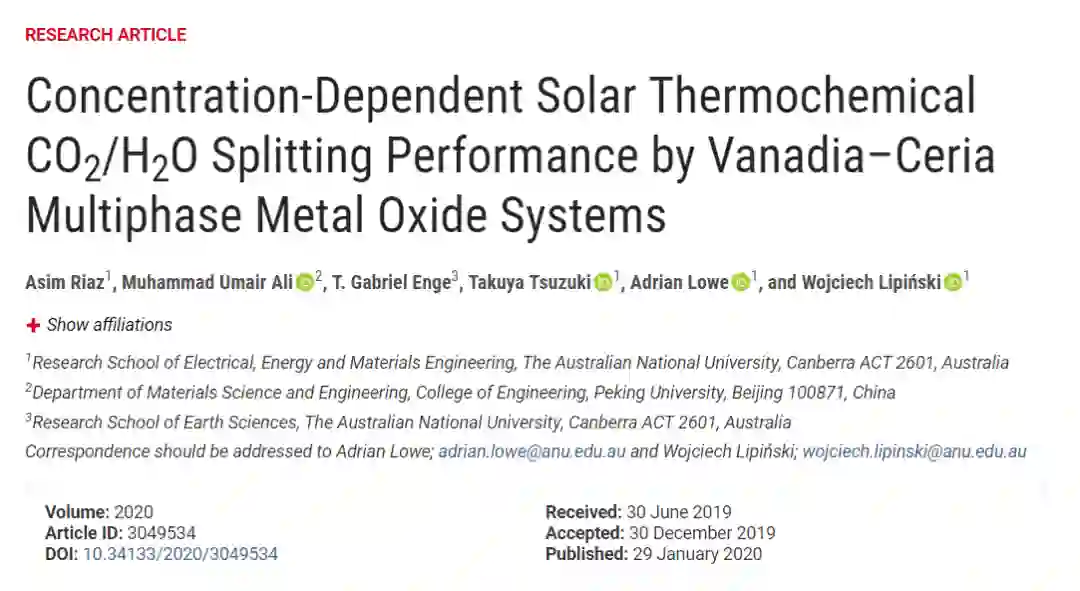 通讯作者:Adrian Lowe; adrian.lowe@anu.edu.au and Wojciech Lipiński; wojciech.lipinski@anu.edu.au