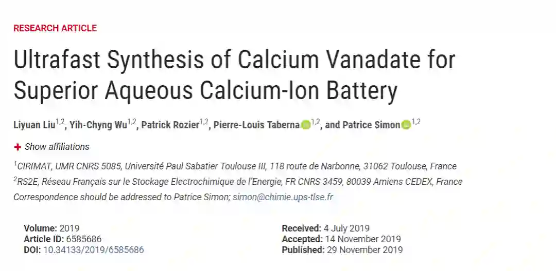 03/Ultrafast Synthesis of Calcium Vanadate for Superior Aqueous Calcium-Ion Battery