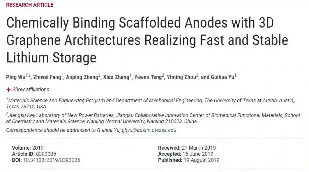 利用3D石墨烯架构和支架阳极进行化学键结合,实现快速和稳定的锂存储