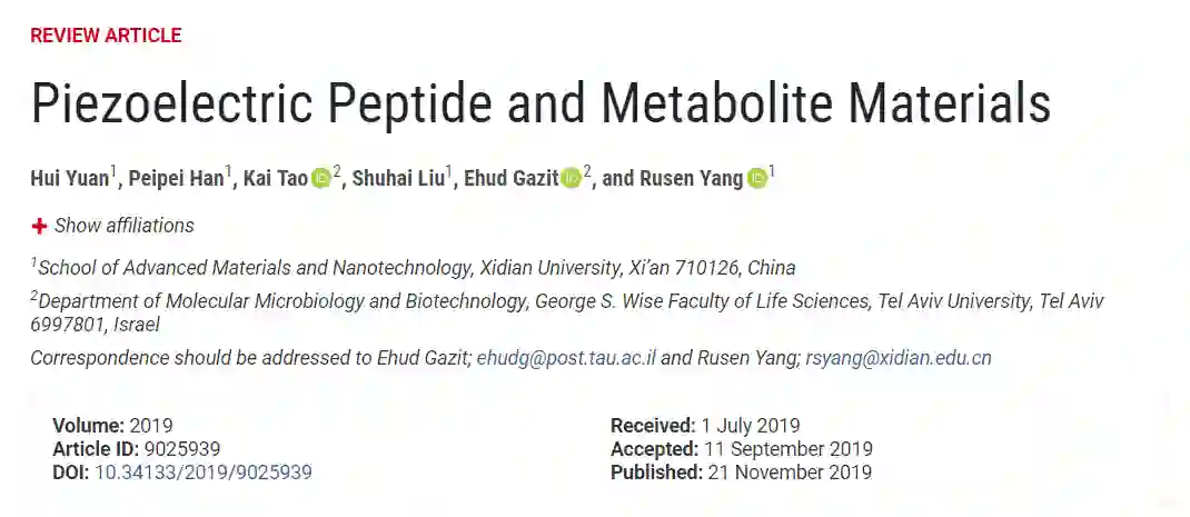 通讯作者:Ehud Gazit ehudg@post.tau.ac.il;杨如森rsyang@xidian.edu.cn