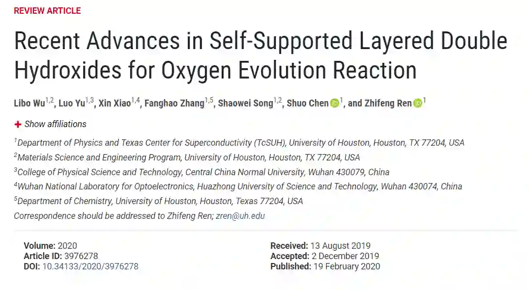 02/Recent Advances in Self-Supported Layered Double Hydroxides for Oxygen Evolution Reaction