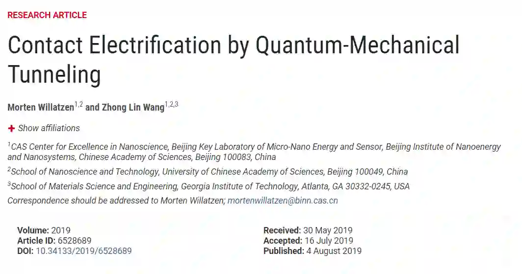 通讯作者:Morten Willatzen mortenwillatzen@binn.cas.cn;王中林