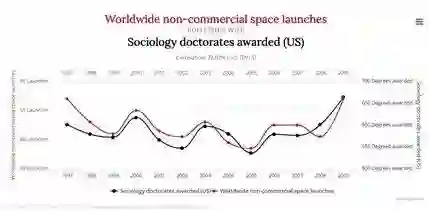 图1. 全球非商业性空间飞船发射数量与美国社会学博士毕业数量之间的关系[1]