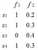 机器学习中对于数据的表达一般是 n*m的矩阵,n代表样本的数量,一行(row)数据代表一个独立数据。而m代表特征变量(attribute/feature/variable)的数量,一列(column)数据代表某个特征在所有样本上的数值。比如下图就代表了一个 4*2(n=4,m=2)的矩阵,即总共有4条数据,每个数据有2个特征。