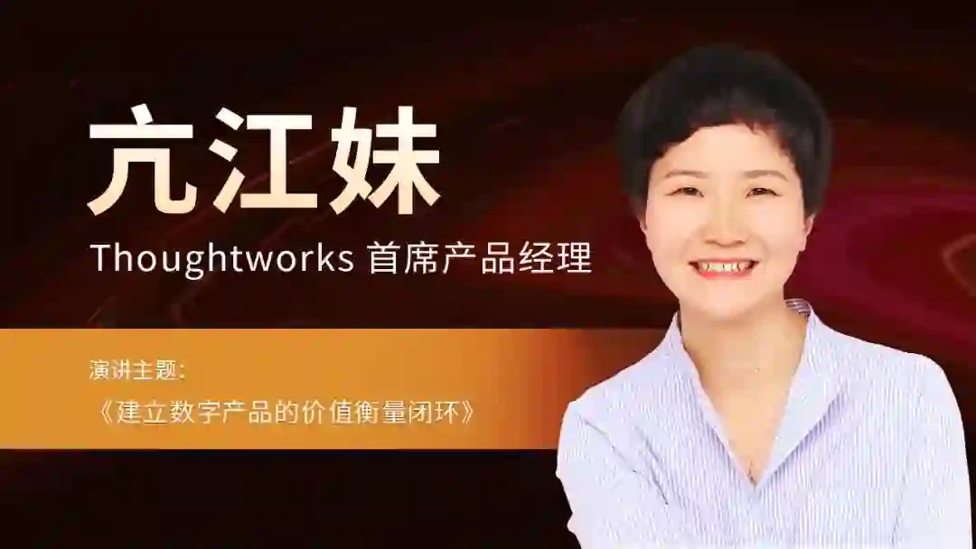拥有 15+ 年大型企业产品管理经验的Thoughtworks 首席产品经理@亢江妹老师,将从产品管理的角度出发,来跟我们聊聊如何建⽴数字产品的价值衡量闭环。
