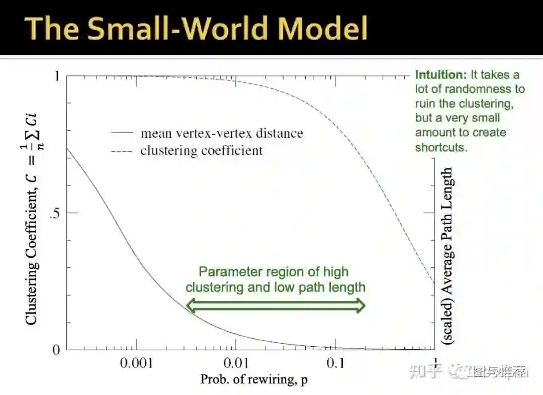 从图中可以看到“高聚合系数+低路径长度”的区域是很大的