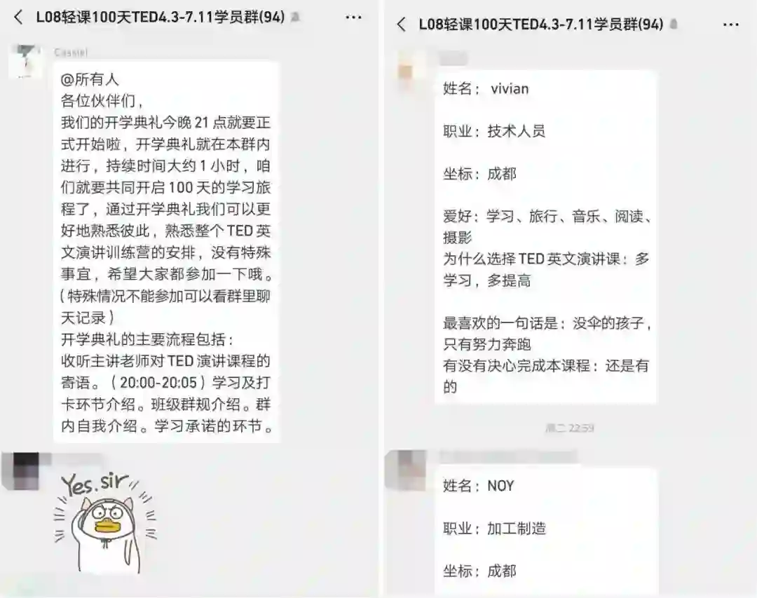 另外,《TED英语演讲训练营》特有的社群共学+班长督学依然与你相伴,每位学员都会被分派到你的专属班级,与同学们一起学习。