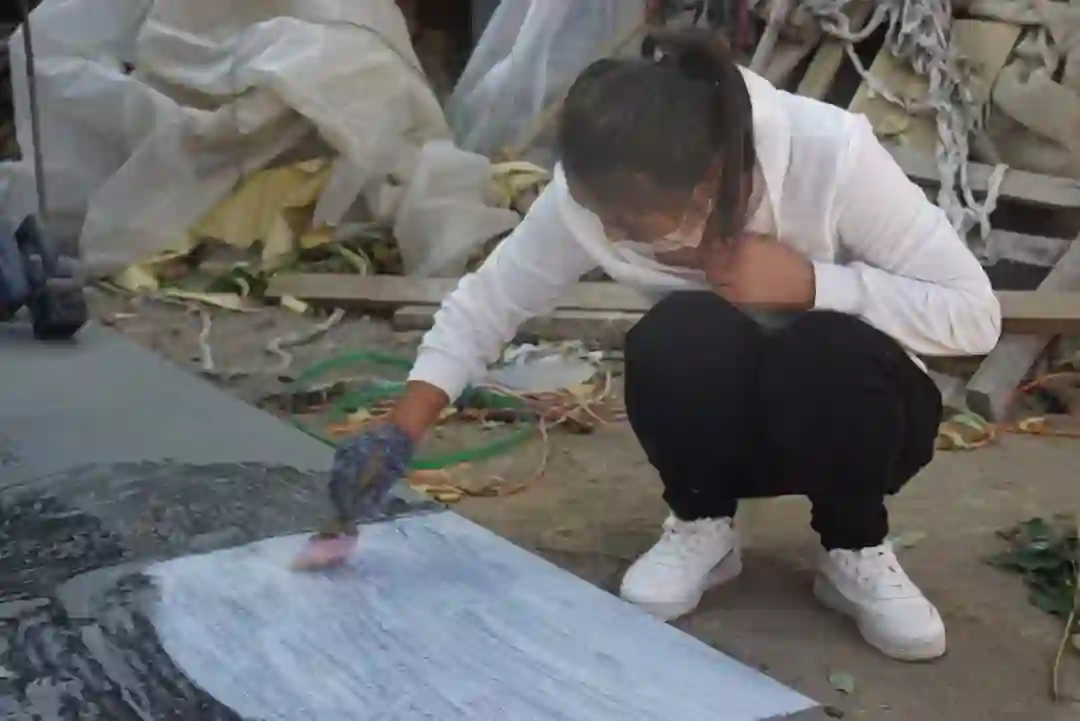 张展昭,就是这十万匠人中的一个,从事石碑影像雕刻十年。影雕,是用特制的针,在墨玉、山西黑等石材上雕琢图案的工艺。与普通石雕相比,影雕更为细腻,雕的人像似照片一般逼真,这项技艺被广泛运用在墓碑的制作中。