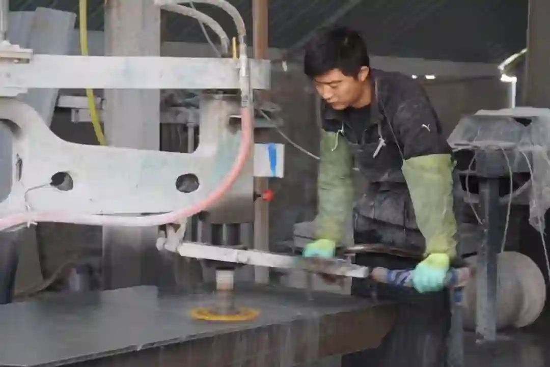小院刚运来四块一立方左右的花岗岩石块,重达六吨,是这次美国订单所用的石料。