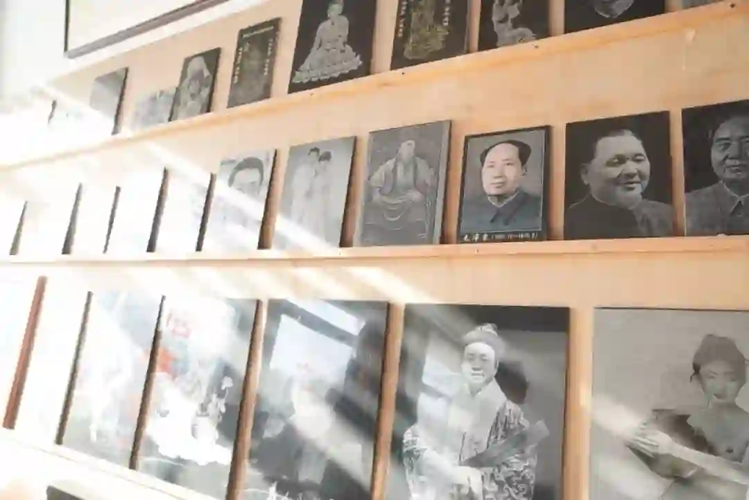 这是个极普通的农家小院,推开厚重的黑漆木门,几株白杨挺拔苍翠,树影森森,赫然立着几座墓碑。远处,形色各异的石碑,以及碑上若影若现的人像,让这里弥漫着一股庄重肃穆的气氛。