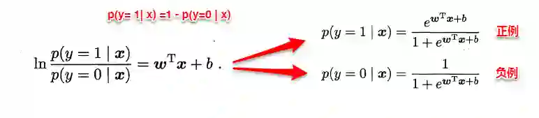 若将y看做样本为正例的概率,(1-y)看做样本为反例的概率,则上式实际上使用线性回归模型的预测结果器逼近真实标记的对数几率。
