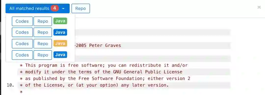 当你放到其中一个变量名上时,可以看到与此变量相关的更多信息。比如,【Repo】链接到包含用这个名字命名变量的资源地址;【Codes】可以直接看到源码;