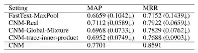 • CNM-Real replaces word embeddings and measurements with their real counterparts