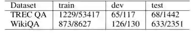 本文在两个QA数据集上进行了实验,数据集特性如下图:
