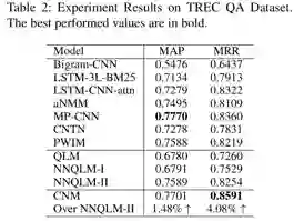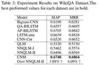 本文提出的方法在两个数据集上相比于quantum-inspired的QA模型(QLM,NNQLM-i, NNQLM-ii),表现更好,并且在WikiQA上击败了所有的方法。