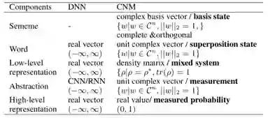 使用complex value组合词的表示,embedding向量的长度和方向均具备一定的物理含义,其中归一化的向量(方向)表示为词的状态,长度为词在句子中的重要性体现: