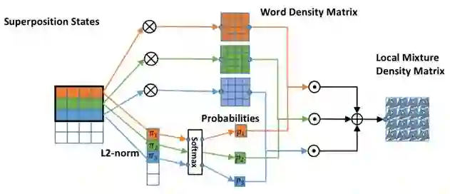 如下图所示,以词为中心计算窗口范围内的 density matrix,对局部子语义系统的不确定性进行计算。