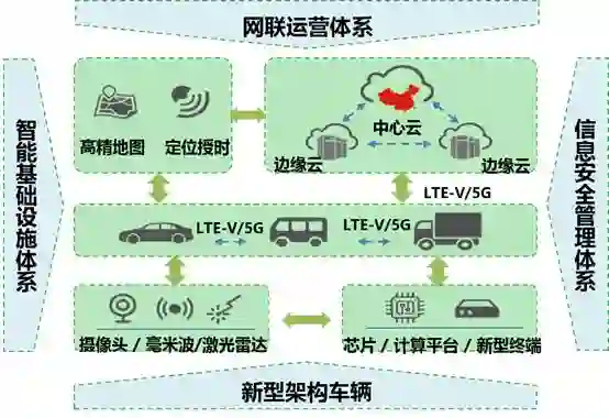 车载计算基础平台、车载终端基础平台、云控基础平台、高精度动态地图基础平台和信息安全基础平台。