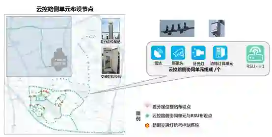 云控路侧单元布设节点,每个节点包括雷达、摄像头和边缘计算。