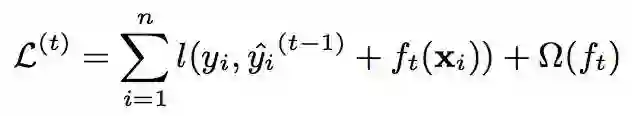 此时我们会采用一种叫做additive training的方式,即每一次保留原来的训练模型(回归树)不变,加入一个新的模型到原来的模型中。其中,数学表示如下: