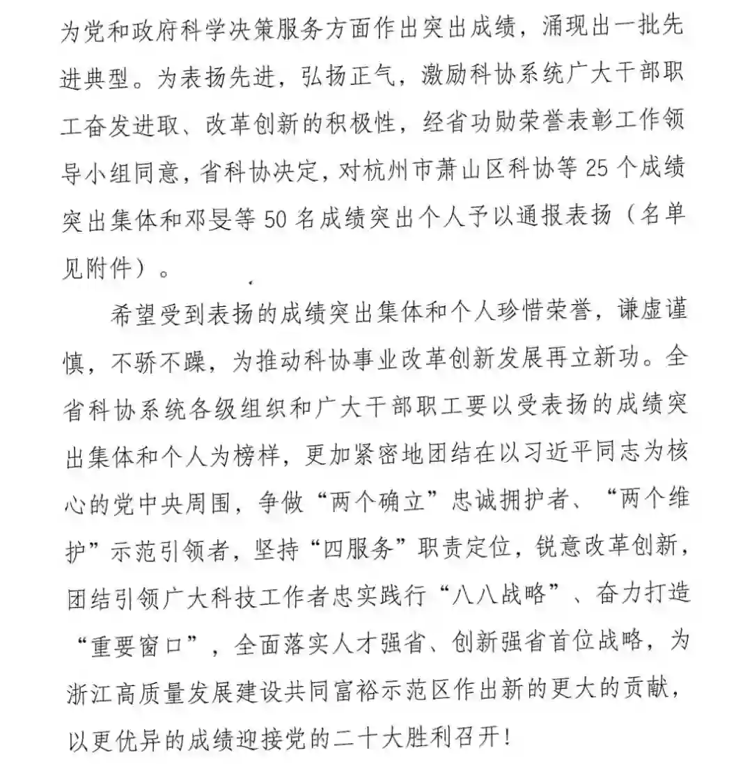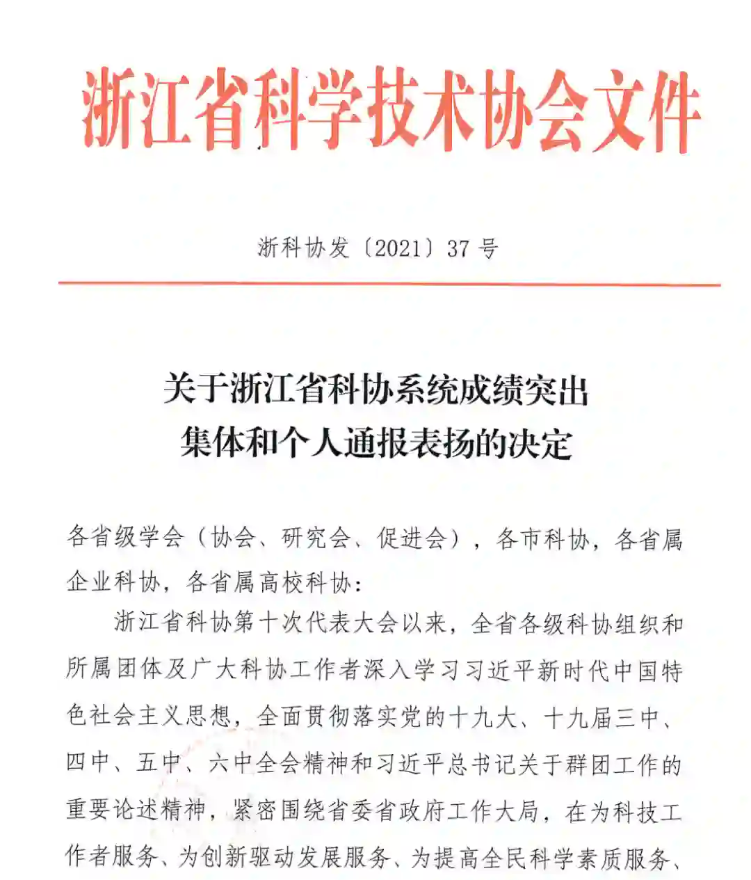 近期,为驱动浙江省社会团体创新发展服务,浙江省科学技术协会发布《关于浙江省科协系统成绩突出成绩和个人通报表扬的决定》的通知,表扬了一批典型榜样,浙江省计算机学会理事长庄越挺教授喜获学会工作 “成绩突出个人” 荣誉。