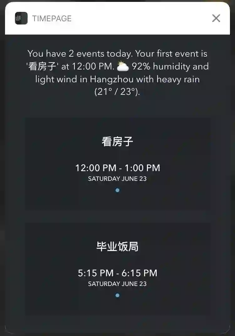 用一个应用代替多个 App:多使用多功能的 App。日历工具 Timepage 的日程提醒通知中会附有当天的天气和交通情况,我一般就不需要再依靠单独的天气和导航 App,每天早晨一条通知就能一览当天的的工作、天气甚至交通情况。