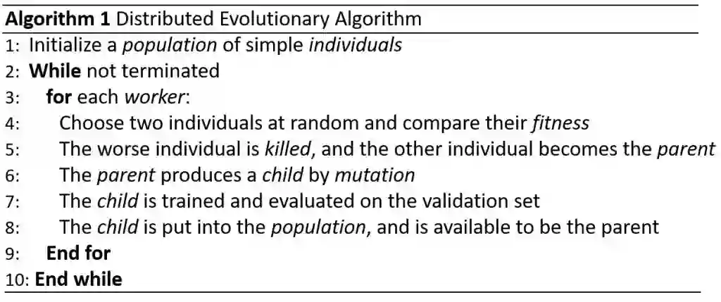 大量的计算节点(worker)被用来对 DNN 种群进行演化。具体而言,所有的 worker 处在分布式环境下,共享存储 DNN 种群的文件系统,并以异步的方式工作。