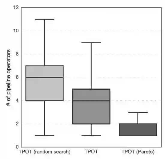 TPOT 的一个潜在问题在于可能会产生过于复杂的工作流,从而导致过拟合。针对这个问题,论文 [2] 对 TPOT 作出了拓展,将工作流复杂度(即包含的操作节点个数)作为第二个优化目标,提出了 TPOT-Pareto,其使用了类似于 NSGA 中所采用的选择算子。