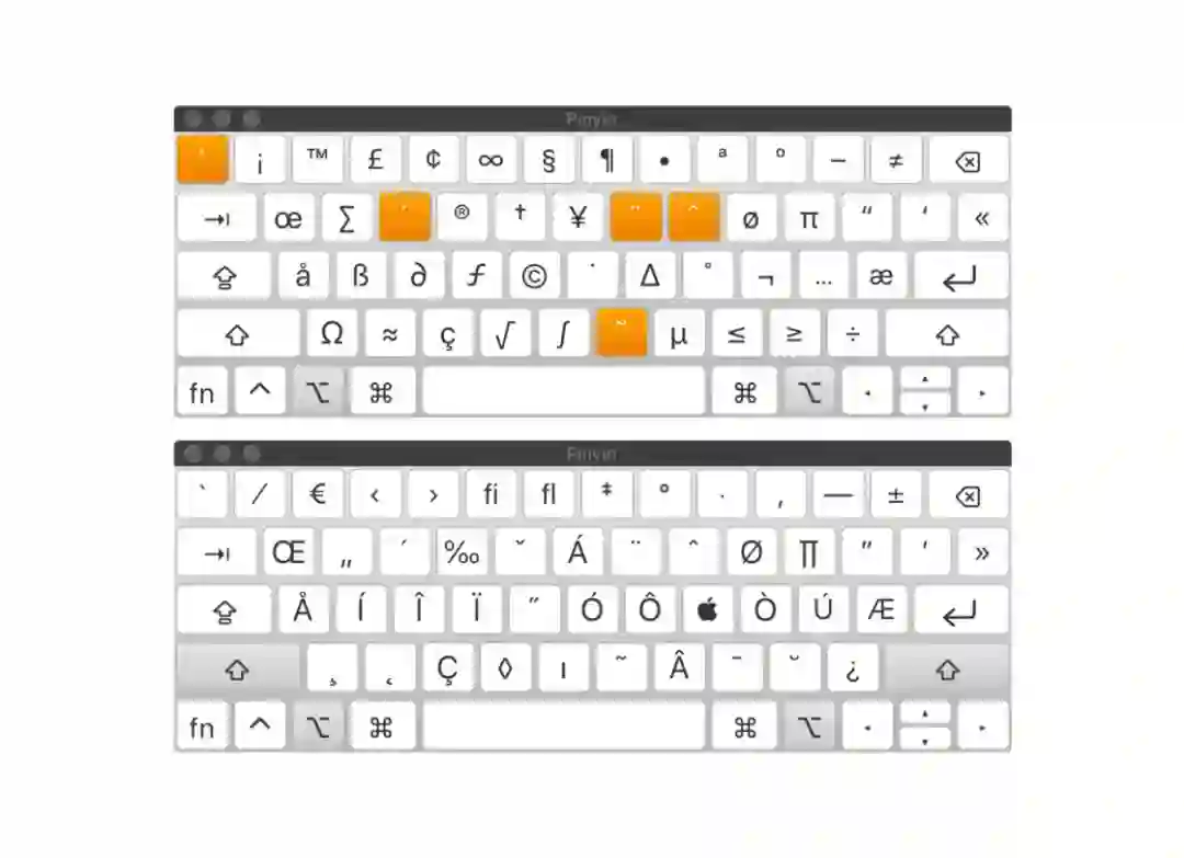 macOS 键盘在按下 Option 和 Option + Shift 时的符号映射