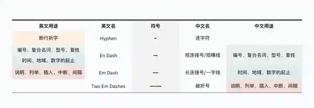 各种「横线」在中英文中的用途对比