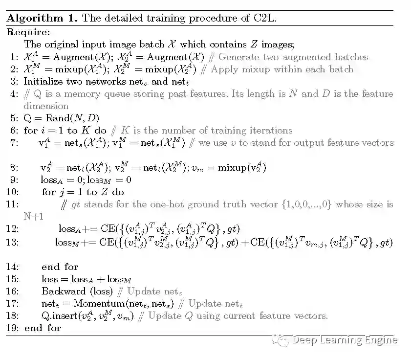 Feature Comparison, Memory Q and Loss Function:如伪代码如所示,C2L模型优化最小化同质数据对之间的距离,最大化异质数据之间的距离。