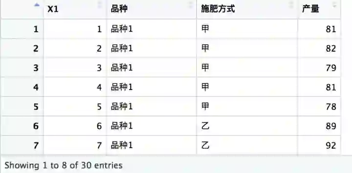 R模拟操作:(研究品种与产量的方差分析)