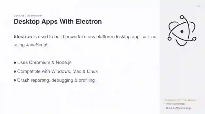 Electron是一个使用JavaScript构建跨平台的桌面应用工具.